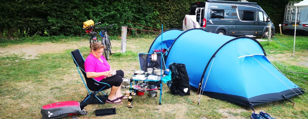 Wir haben aber nicht auf der Zeltwiese sondern neben den Campern unser Zelt aufgeschlagen. Zum einen war die Zeltwiese zu weit weg für nur eine Nacht und durch den Regen ein wenig matschig.