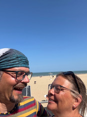 Die Fahrt am 20. nach LePortel war auch wieder sehr anstrengend und ich habe ca. die Hälfte der Km geschoben. Bernhard der Hulg ist jede Steigung gefahren. Aber auch er musste zwischendurch immer mal wieder anhalten und durchschnaufen. Da wir aber umgeplant haben hat mir die Strecke dann wieder Spaß gemacht. Die Sonne hat aber wieder ordentlich gebrannt. Der Campingplatz war mit dem Zelt miserabel. Eine huckelige Wiese mit Maulwurfshügeln, Mäuselöchern, und Sandflöhen; direkt am Hang mit praller Sonne und ohne Strom. Hier hat dann selbst das Tarp als Sonnenschutz nicht mehr viel leisten können. Aber wir haben Abends am Strand sehr lecker gegessen Porto au melon , Tagliatelles aus crevettes, Duo Poisson und Tarte aus abricots. Das hatten wir uns verdient 😁 Und danach haben wir den Sonnenuntergang genossen.