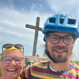 Der 19. war mein schlimmster Tag. Immer nur Felder, kein Meer, pralle Sonne und ich habe es keinen Hügel ohne schieben hinauf geschafft. 50 kg Gepäck inklusive Fahrrad bergauf schieben ist auch nicht so ohne aber mein Rücken hat das erstaunlicherweise gut verkraftet. Trotzdem, ich war ganz schön verzweifelt. Da aber auch Bernhard die Hügelfahrerei mit dem Gepäck sehr unterschätzt hat fühlte ich mich nicht ganz so unfähig 🥴 Und zuletzt mussten wir die Landstraße ohne Fahrradweg rauf. Die Abfahrten waren auch nicht so ohne weil wir mit dem vielen Gepäck nicht so schnell fahren können, das Risiko ist zu groß. Da haben unsere Bremsen auch ordentlich zu tun bekommen.